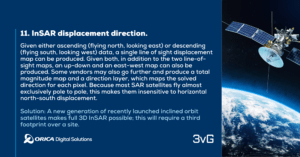 Solution: A new generation of recently launched inclined orbit satellites makes full 3D InSAR possible; this will require a third footprint over a site.